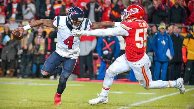 This will get lost in the explosion of offense at Arrowhead, but here’s Chiefs DE Frank Clark’s stat line: four tackles, three sacks, four quarterback hits. The ex-Seahawk was constantly around or on top of Deshaun Watson, and showed what GM Brett Veach and Co. were doing by dealing away first- and second-round picks for him, then turning around and handing him $21 million per year.