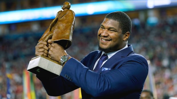 That Falcons owner Arthur Blank brought up left guard as a need spot—most owners generally aren’t getting into the weeds of offensive-line talk in the offseason—underscores how big a part of 2020 the line is for Atlanta. Before the start of last offseason, GM Thomas Dimitroff promised Blank that he’d get the line fixed, and he spent two first-round picks on linemen to do it (Chris Lindstrom, Kaleb McGary). Now, after some injury issues in 2019, both Dimitroff and coach Dan Quinn need for the return to come on those investments, because the most powerful guy in the building, clearly, is watching it closely.