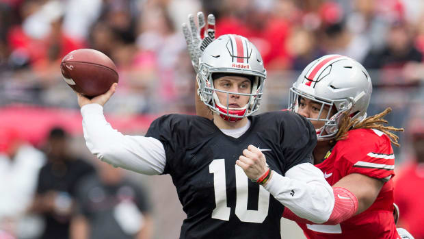 Now, the flip side of that? Burrow came in a little raw, and when he got hurt, he fell behind Dwayne Haskins, who was further along as a passer, despite being a year behind him in class rank. "It’s really intriguing that we had them both there, and one was a little bit behind because he was also an all-state basketball player,” Meyer said. And so he went with Haskins, who threw for 50 touchdowns in Meyer’s final year, and had to let Burrow go.