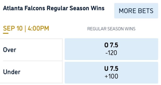 William Hill lists Atlanta’s over/under at 7.5 wins with -120 juice on the over.